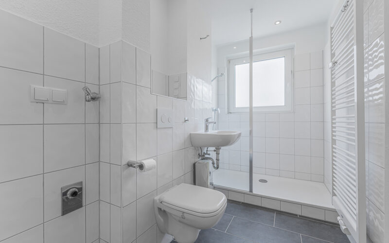 Das modernisierte Tageslicht-Duschbad ist zeitgemäß ausgestattet und verfügt über einen Anschluss für die Waschmaschine.