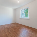 Das helle Wohnzimmer bildet den Mittelpunkt der Wohnung und bietet direkten Zugang zum Balkon. Dieser eröffnet einen angenehmen Blick ins Grüne und verfügt zusätzlich über einen praktischen Abstellbereich.
