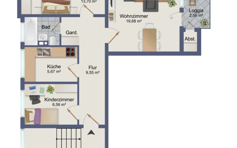 Diese schöne Hochparterre-Wohnung befindet sich in einem ruhigen Mehrfamilienhaus aus dem Baujahr 1960 und bietet eine Wohnfläche von ca. 65 m², verteilt auf 2,5 Zimmer, eine Küche sowie ein Duschbad. Die Wohnung wurde 2015 umfassend saniert und präsentiert sich heute in einem modernen und sehr gepflegten Zustand.