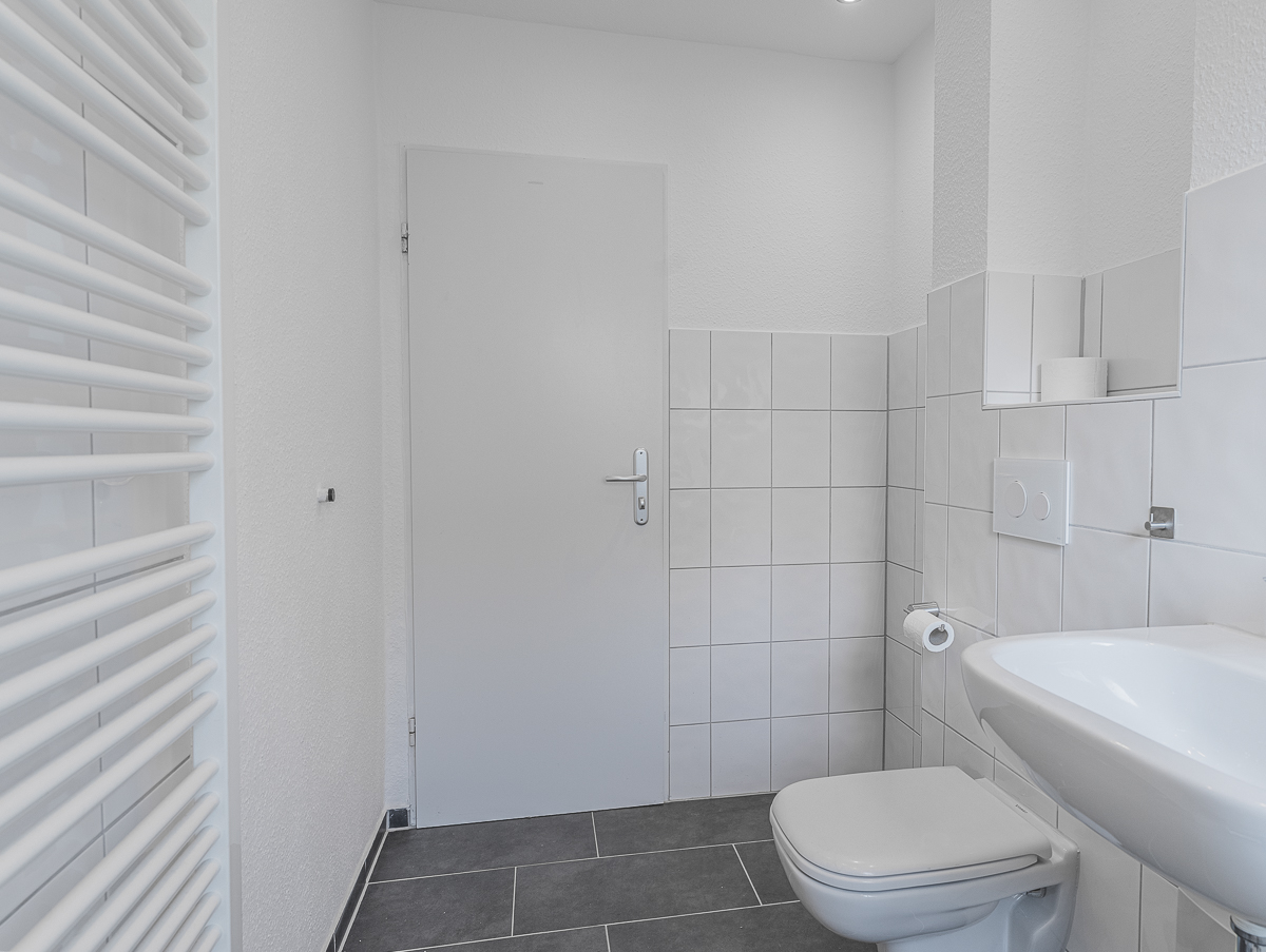 Das modernisierte Tageslicht-Duschbad ist zeitgemäß ausgestattet und verfügt über einen Anschluss für die Waschmaschine.