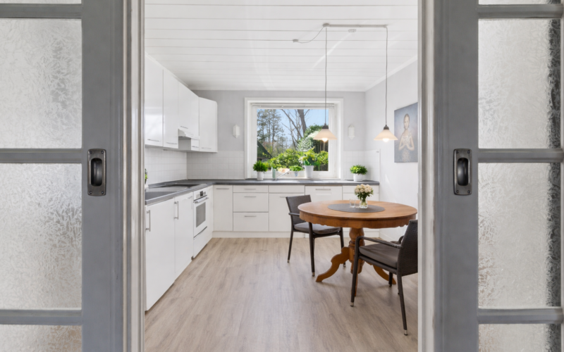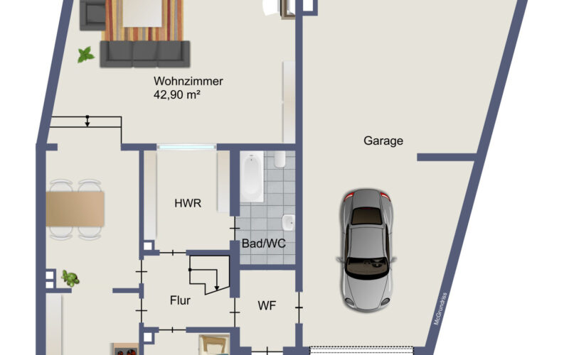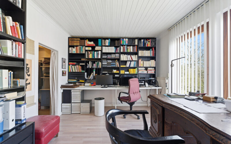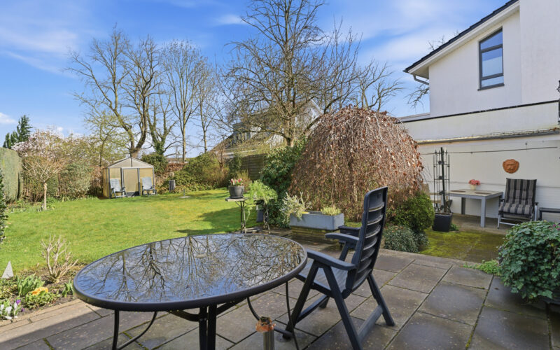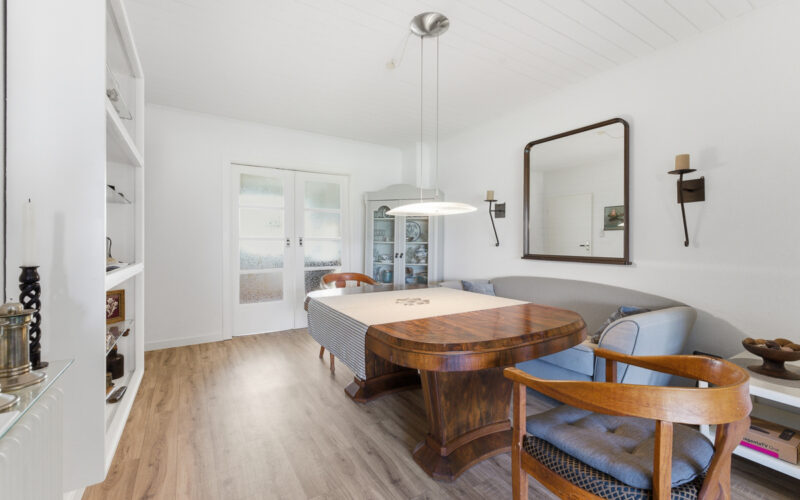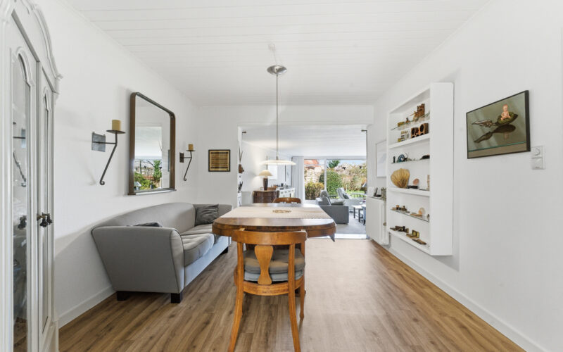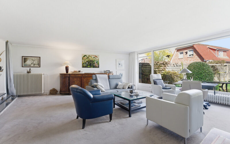 Der Zugang zum Haus erfolgt über einen gepflegten Vorgarten. Ein Windfang führt in den zentralen Flur, von dem aus sämtliche Räume des Erdgeschosses erreichbar sind. Das Herzstück der Immobilie bildet das ca. 42 m² große Wohn- und Esszimmer, das durch seine Großzügigkeit sowie die große Fensterfront mit Blick in den Garten überzeugt. Von hier aus besteht direkter Zugang zur Terrasse, die zu entspannten Stunden im Freien einlädt.
