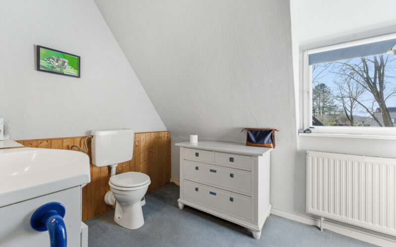 Im Obergeschoss befinden sich zwei gut geschnittene Schlafzimmer sowie ein separates WC, das bei Bedarf zu einem vollwertigen Badezimmer umgebaut werden kann.