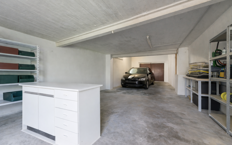 Zusätzliche Abstell- und Nutzflächen stehen im Keller zur Verfügung. Eine großzügige Garage bietet darüber hinaus ausreichend Platz für ein Fahrzeug sowie die Einrichtung eines Werkstatt- oder Hobbybereichs.