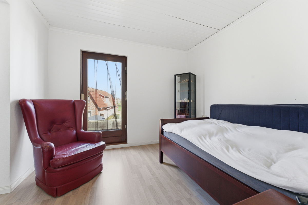 Im Obergeschoss befinden sich zwei gut geschnittene Schlafzimmer sowie ein separates WC, das bei Bedarf zu einem vollwertigen Badezimmer umgebaut werden kann.