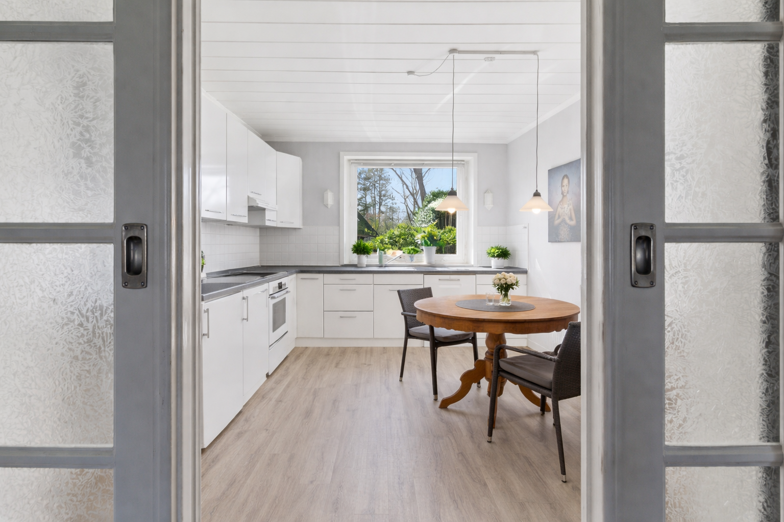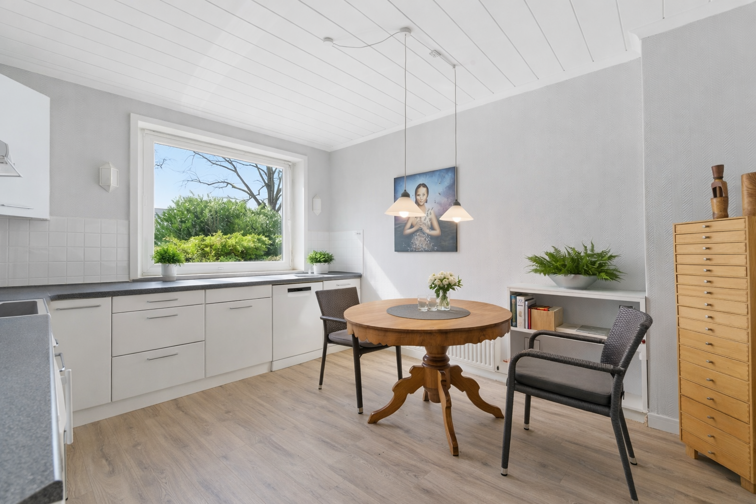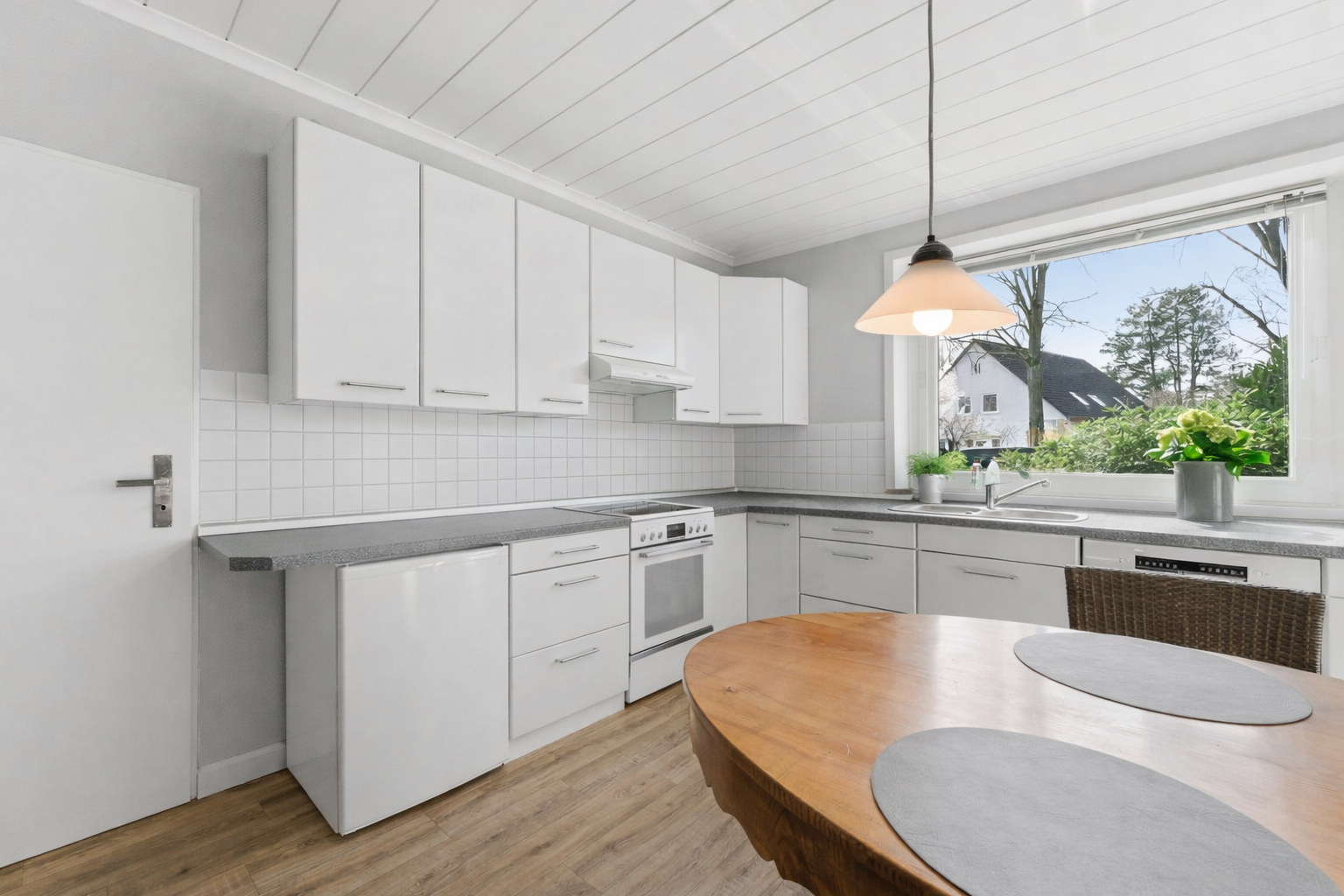 Die Küche ist mit einer Einbauküche ausgestattet und bietet ausreichend Platz für einen Frühstücksbereich. Ergänzt wird das Erdgeschoss durch einen Hauswirtschaftsraum, ein Vollbad mit Dachfenster sowie ein weiteres Zimmer, das sich ideal als Schlafzimmer oder Büro eignet.