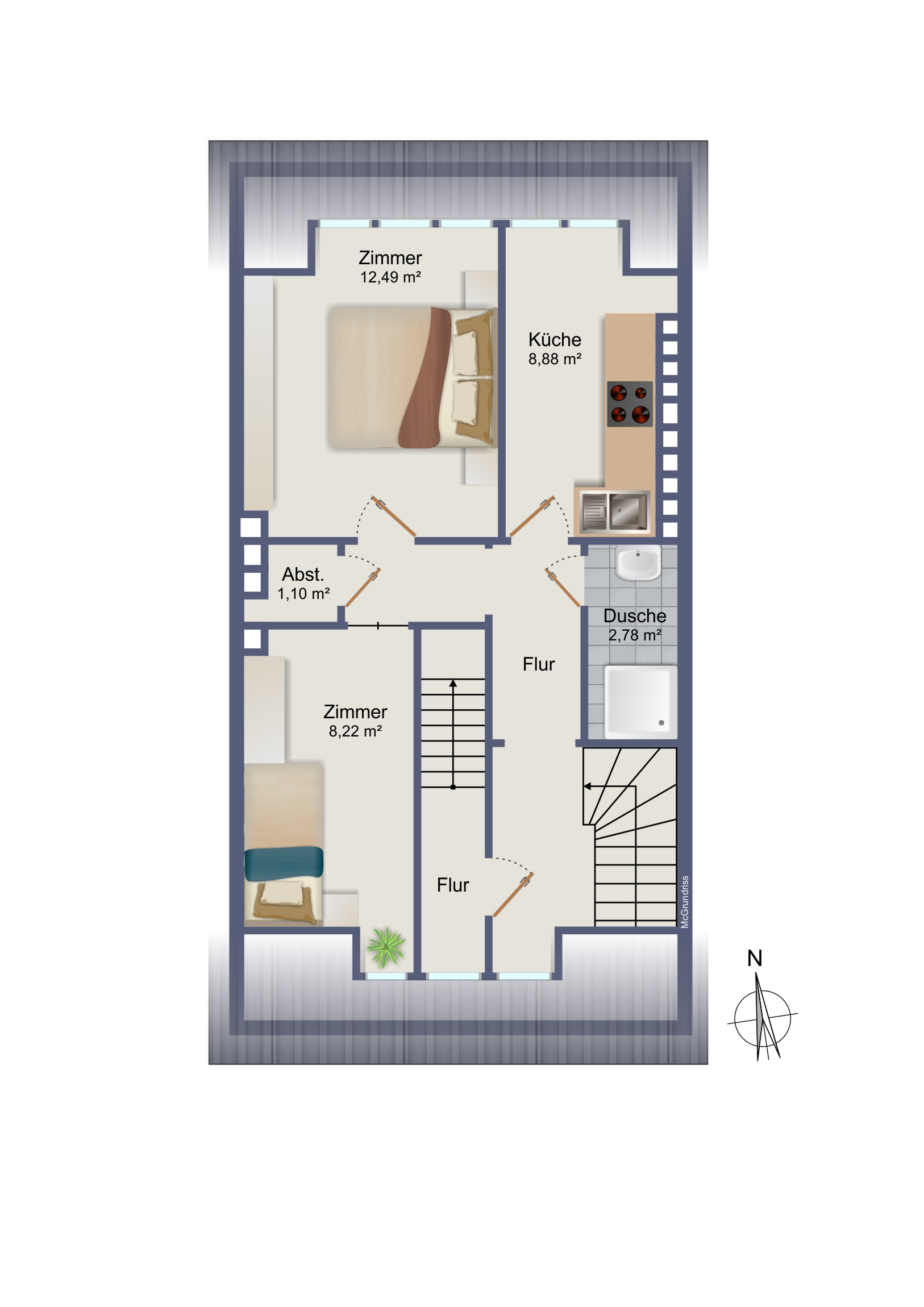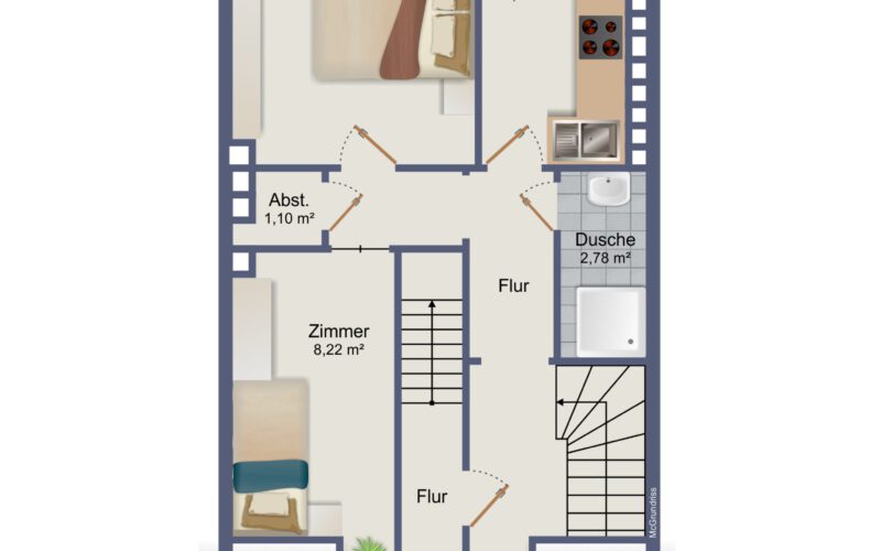 Auf insgesamt vier Etagen stehen ca. 181 m² Wohnfläche zur Verfügung, verteilt auf vier Wohneinheiten mit jeweils zwei Zimmern, Küche und Duschbad. Ergänzend bietet die Immobilie ca. 38 m² Nutzfläche, die zusätzlichen Stauraum und praktische Nutzungsmöglichkeiten für die Mieter eröffnet. Das Grundstück umfasst ca. 137 m² und bietet damit einen gut nutzbaren Rahmen für ein innerstädtisches Objekt dieser Art.