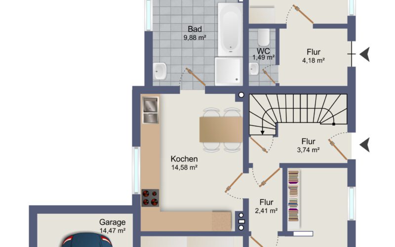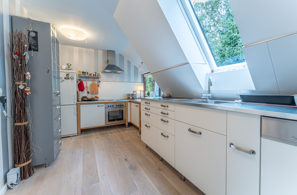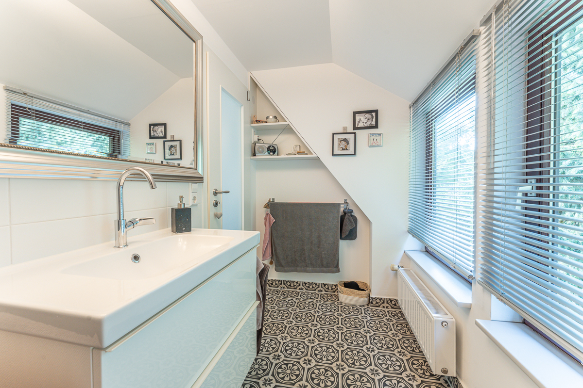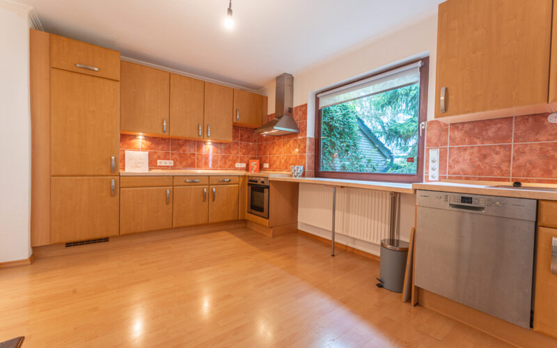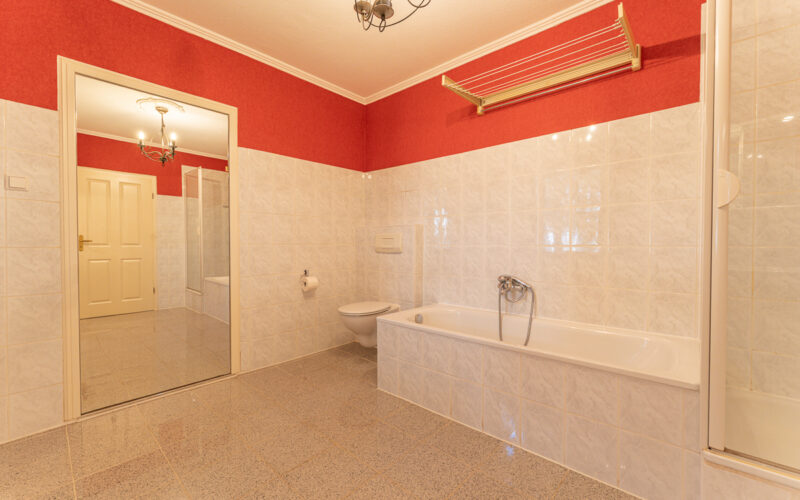 Im Erdgeschoss befindet sich ein Vollbad, im Obergeschoss ein Duschbad, zudem steht ein praktisches Gäste-WC zur Verfügung. Die Sanierung und Modernisierung erfolgten umfangreich ab 2015; die Elektrik ist auf dem aktuellen Stand, die Fenster bestehen aus Holzverglasung aus den 1970er Jahren und wurden 2019 durch Kunststofffenster ersetzt, die Haustüren wurden ebenfalls erneuert. Die Bodenbeläge gliedern sich in Laminat und Fliesen im Erdgeschoss sowie Echtholz-Parkett und Fliesen im Obergeschoss. Die Gasheizung stammt aus dem Jahr 2005 und sorgt für zuverlässige Wärme. Zur Ausstattung gehören eine Garage, eine Terrasse mit Überdachung sowie ein schöner Garten mit Gartenhaus und Grundwasserbrunnen zur Gartenbewässerung. So bietet das Haus flexible Nutzungsmöglichkeiten: Eigennutzung plus Vermietung oder eine Mehrgenerationslösung, ergänzt durch den separaten Büroraum für vielfältige Nutzungsszenarien.