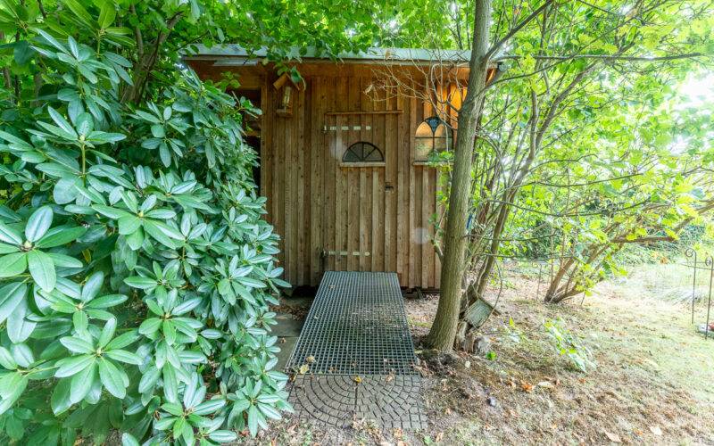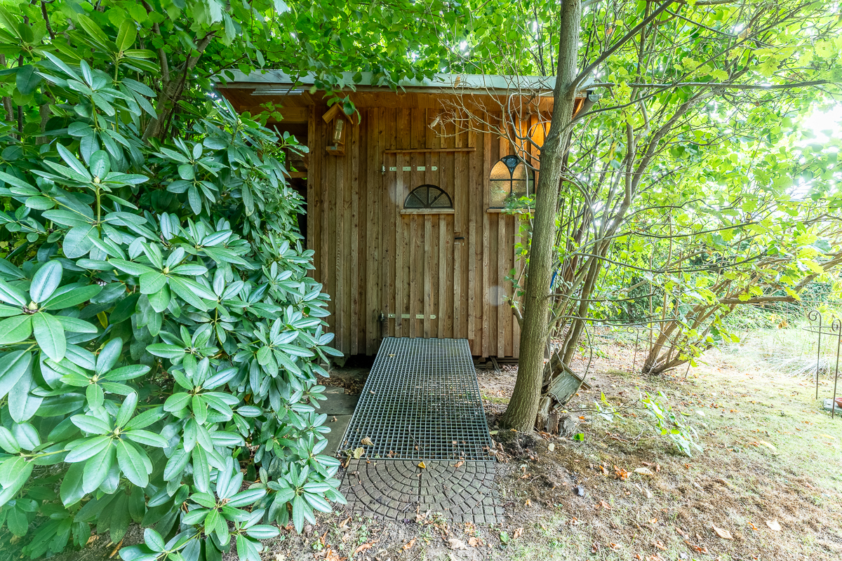 schöner Garten mit Gartenhaus und Grundwasserbrunnen