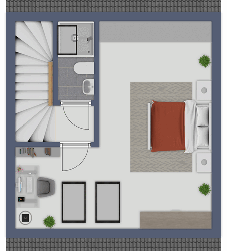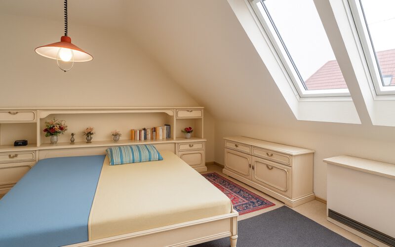 Das ausgebaute Dachgeschoss bietet einen großzügigen Rückzugsort – ideal als Elternschlafzimmer oder Studio. Zusätzlich steht hier ein eigenes Duschbad zur Verfügung, das für besonderen Komfort sorgt.
