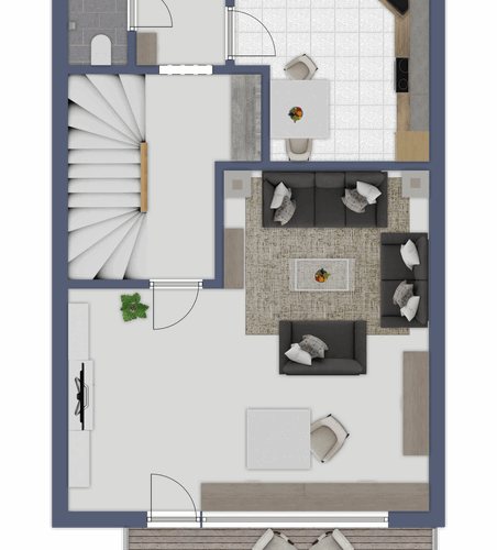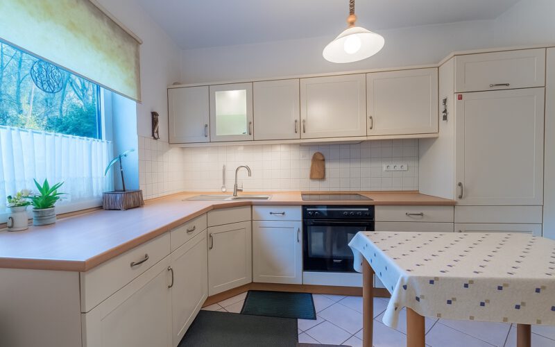 Auf insgesamt vier Ebenen finden Sie großzügig geschnittene Räume und vielfältige Nutzungsmöglichkeiten. Im Erdgeschoss befindet sich der offene Wohn- und Essbereich, der durch seine großen Fensterflächen viel Licht erhält und direkt auf den Balkon führt. Von hier genießen Sie den Blick in den Garten – ein schöner Ort, um den Tag entspannt ausklingen zu lassen. Die angrenzende Küche bietet Platz für eine moderne Einbauküche sowie einen gemütlichen Essbereich. Ein Gäste-WC im Eingangsbereich ergänzt das Raumangebot auf dieser Etage.