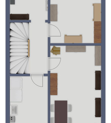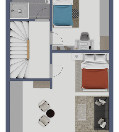 Im Obergeschoss stehen zwei gut geschnittene Schlafzimmer verschiedener Größe zur Verfügung, die sich ideal als Kinder-, Arbeits- oder Gästezimmer eignen. Außerdem befindet sich hier ein Tageslichtbad mit Dusche.