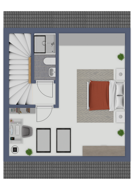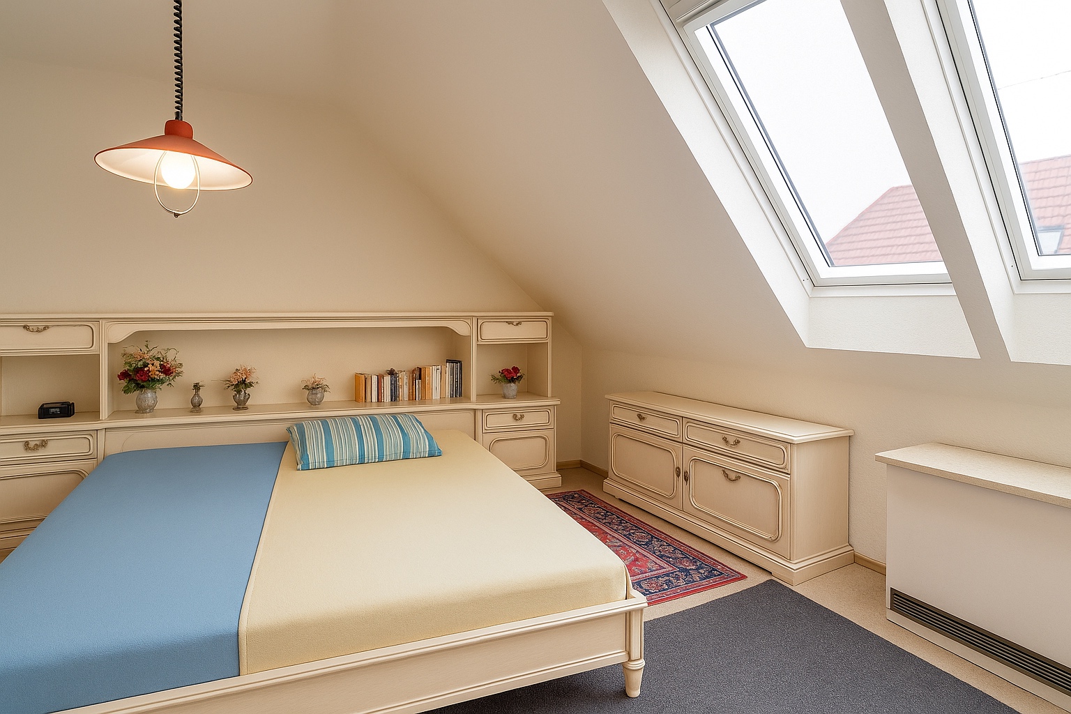 Das ausgebaute Dachgeschoss bietet einen großzügigen Rückzugsort – ideal als Elternschlafzimmer oder Studio. Zusätzlich steht hier ein eigenes Duschbad zur Verfügung, das für besonderen Komfort sorgt.