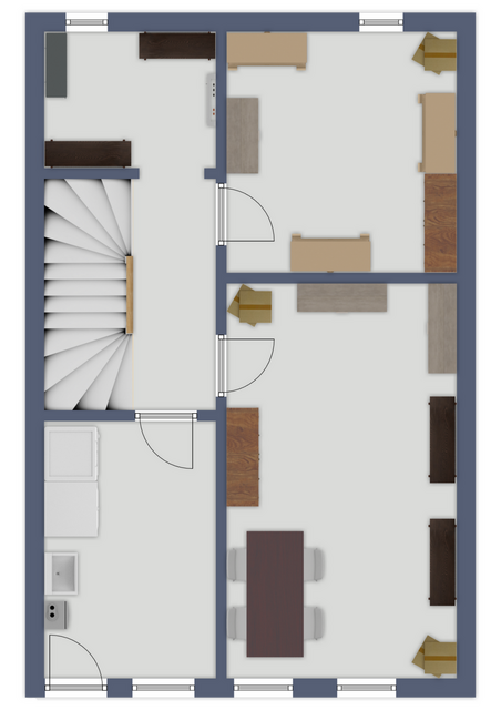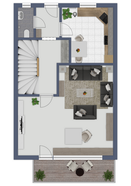 Auf insgesamt vier Ebenen finden Sie großzügig geschnittene Räume und vielfältige Nutzungsmöglichkeiten. Im Erdgeschoss befindet sich der offene Wohn- und Essbereich, der durch seine großen Fensterflächen viel Licht erhält und direkt auf den Balkon führt. Von hier genießen Sie den Blick in den Garten – ein schöner Ort, um den Tag entspannt ausklingen zu lassen. Die angrenzende Küche bietet Platz für eine moderne Einbauküche sowie einen gemütlichen Essbereich. Ein Gäste-WC im Eingangsbereich ergänzt das Raumangebot auf dieser Etage.